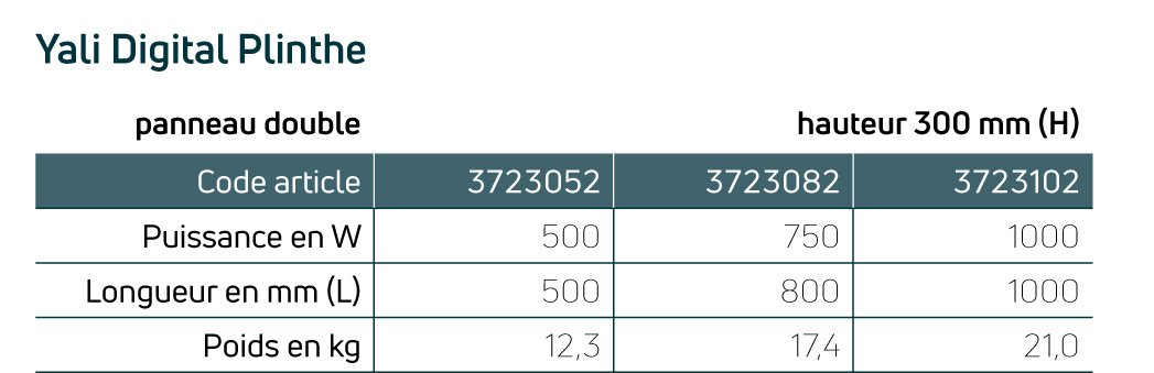 Caractéristiques du radiateur plinthe YALI DIGITAL: