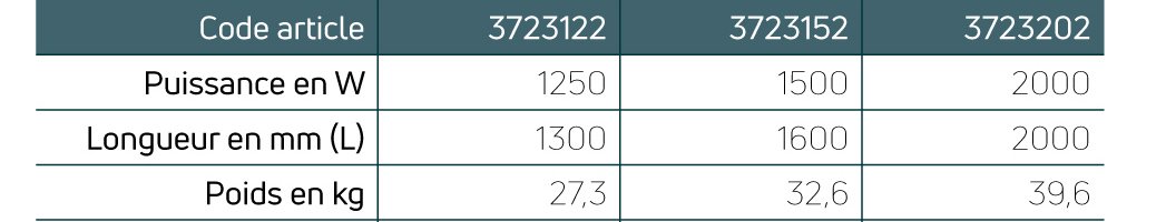 - Disponible en puissances : 500W, 750W, 1000W, 1250W, 1500W et 2000W.