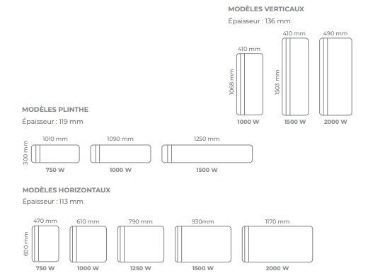 Formats du radiateur électrique CHAMANE :