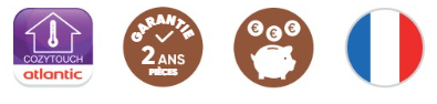 - Fonctions lumineuses innovantes : mode Tamisé, mode Détection et mode Veilleuse, pilotables depuis l’appareil ou grâce à l’application Atlantic Cozytouch.